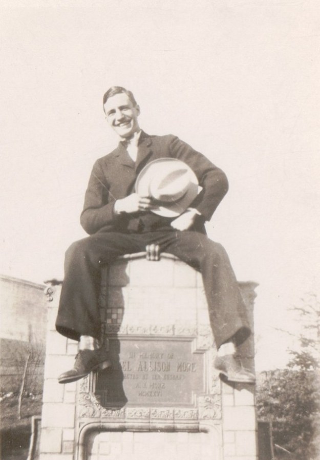 Surrounded by family, Hedwig, who had celebrated her eightieth birthday in 1936, looks relaxed and content, with a wisp of hair blowing in the breeze and her mouth pressed into a smile. She wears a printed dress in a light color, suitable for a summer day, and squints in the sun.