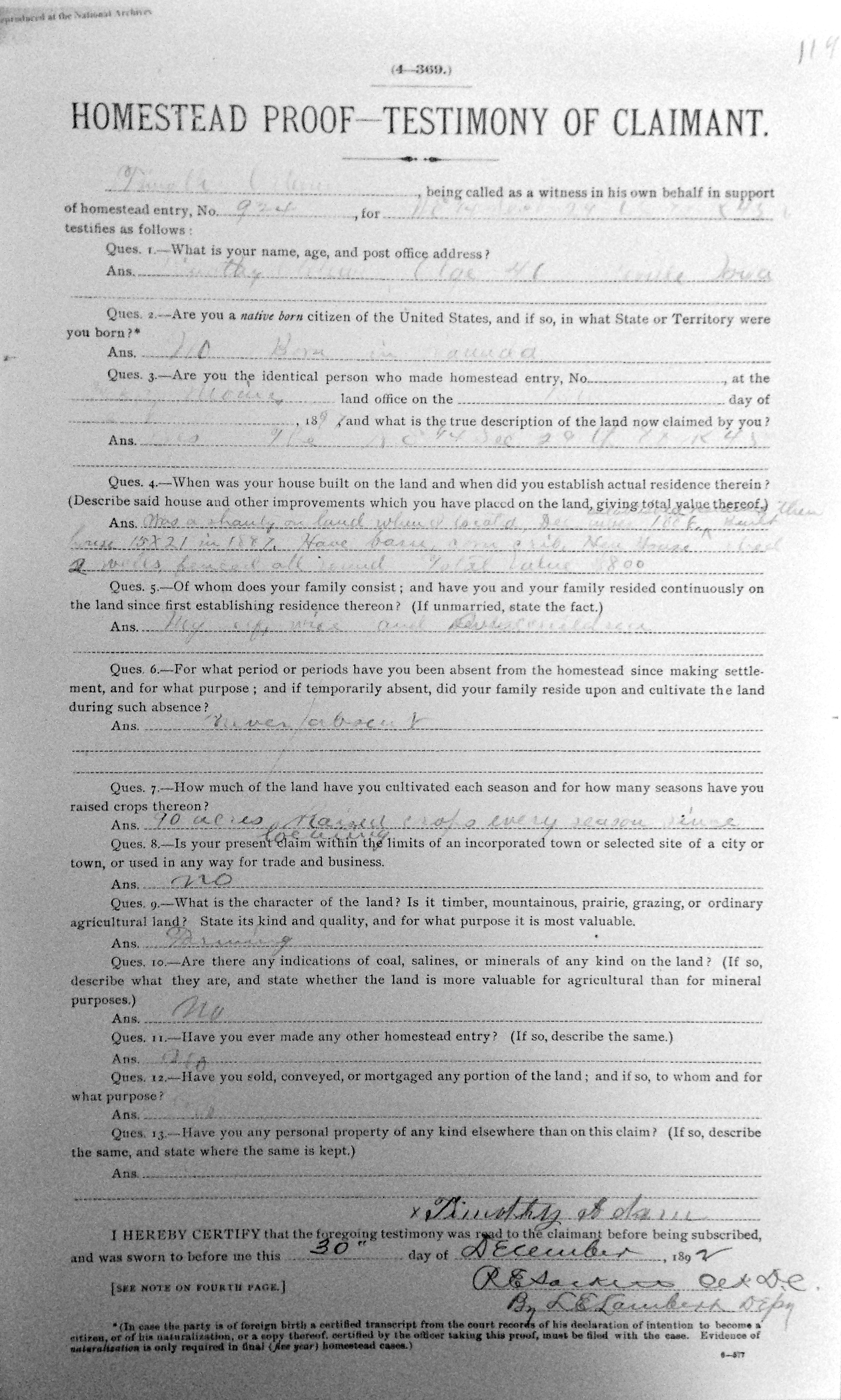 On 19 March 1897, a newspaper in Sioux City, Woodbury County, Iowa, printed the following: “T. Adams, father of P.P. Adams of Davidson Bros., died while visiting relatives at Indian Orchard, Mass., at the age of 84 years.” Timothée would have been, in fact, eighty years old at the time, but this was not the only misprint regarding his death.